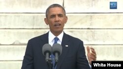 En présence des milliers d'Américains de toutes les couleurs et de milieux sociaux différents qui assistaient à cette grande célébration, le président Obama a dit que King "a donné une voix puissante aux espoirs tranquilles de millions de gens." Il a attribué aux milliers de manifestants dont les noms ne figurent pas dans les livres d'histoire d’avoir réalisé l’exploit de lutter ensemble pour faire une différence.